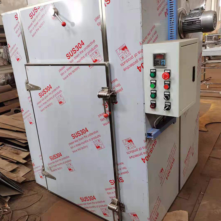 熱風循環(huán)烘箱為箱式多門結(jié)構,分別配置多臺烘車。熱風循環(huán)烘箱的熱源可采用蒸汽加熱或者電加熱。熱風循環(huán)烘箱在運行時通過箱頂部的風機將熱風吹入工作室,再由另一側(cè)風道返回,構成熱風循環(huán),以保證箱體內(nèi)溫均勻性。