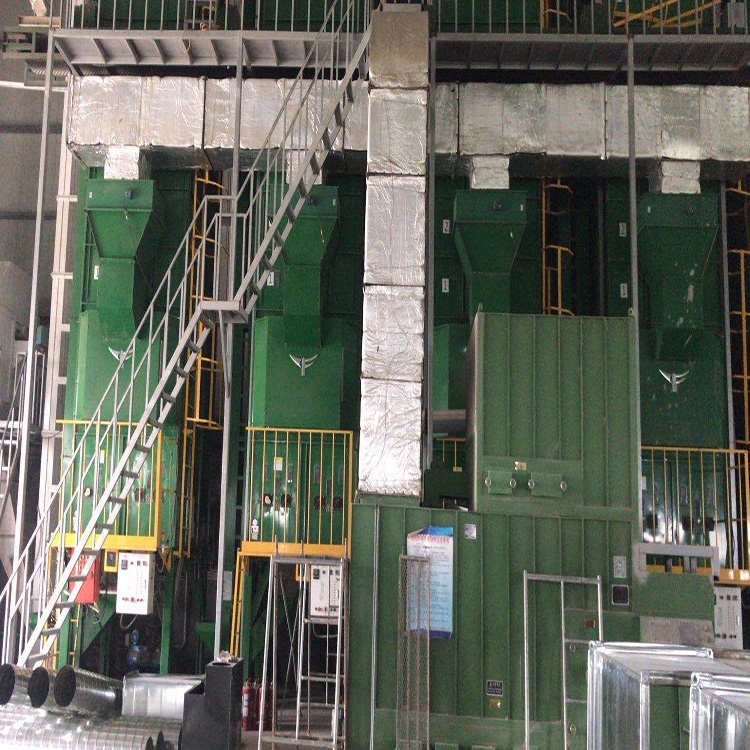 熱風(fēng)爐所使用的燃生物質(zhì)由上料斗裝置裝入進(jìn)料斗,再由條爐排將生物質(zhì)帶入燃燒段。在燃燒段中生物質(zhì)均勻燃燒,燃燒后的生物質(zhì)渣由出渣口排出爐外,而燃燒后的高溫?zé)煔庥梢L(fēng)機(jī)帶至換熱段,在換熱段中與由主風(fēng)機(jī)送入的冷空氣進(jìn)行熱交換,換熱后的煙氣由引風(fēng)機(jī)送至煙囪排出。而經(jīng)過(guò)熱后的熱空氣經(jīng)過(guò)管道送至用熱設(shè)備。在此過(guò)程中,數(shù)字式溫度顯示控制器對(duì)熱風(fēng)出口溫度、爐內(nèi)溫度以及用熱設(shè)備溫度進(jìn)行顯示并通過(guò)對(duì)風(fēng)機(jī)及爐排的開(kāi)關(guān)等方法來(lái)自動(dòng)調(diào)節(jié)烘房溫度,使之符合工藝要求。燃燒設(shè)備采用輕型鏈條爐排,由多級(jí)或無(wú)級(jí)調(diào)速機(jī)構(gòu)傳動(dòng),操作方便調(diào)節(jié)靈活,由于沿?zé)犸L(fēng)爐縱向不同燃燒區(qū)段的燃燒強(qiáng)度不同,所需風(fēng)量也不同,所以沿縱向爐排下設(shè)有獨(dú)立風(fēng)室,空氣由鼓風(fēng)機(jī)鼓入總風(fēng)道后,經(jīng)過(guò)調(diào)風(fēng)機(jī)構(gòu)進(jìn)入爐排下部各風(fēng)室,各風(fēng)室獨(dú)立配風(fēng),配風(fēng)調(diào)節(jié)精確、燃燒控制合理。